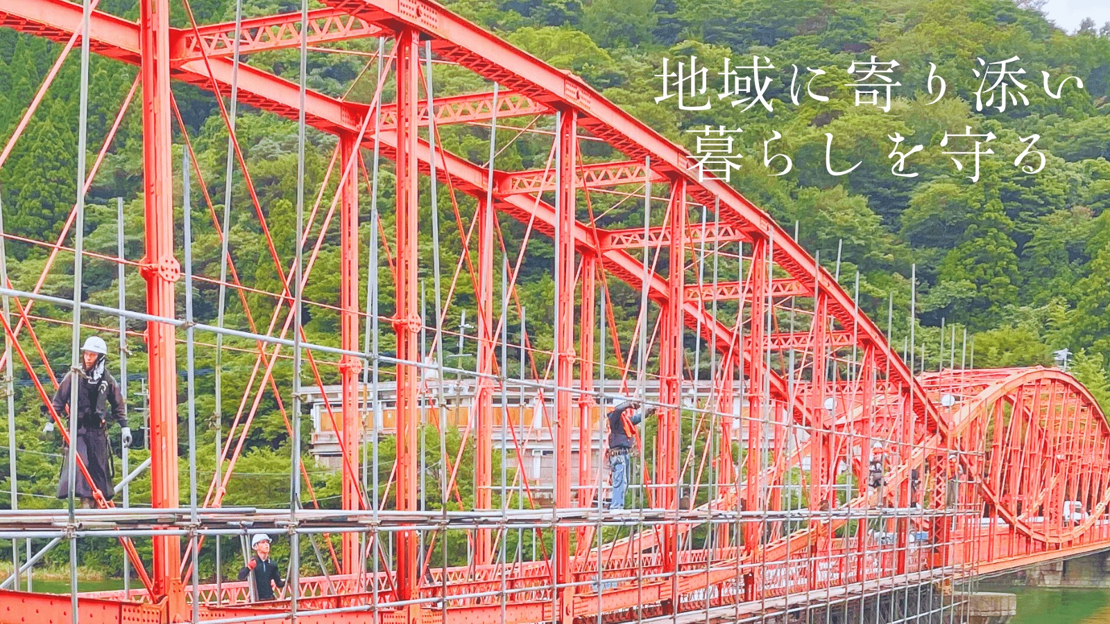 橋梁や鉄塔の塗装、マンション改修、防水工事、住宅リフォームなど、幅広い施工で地域社会の暮らしを支える環境作りに貢献しています。